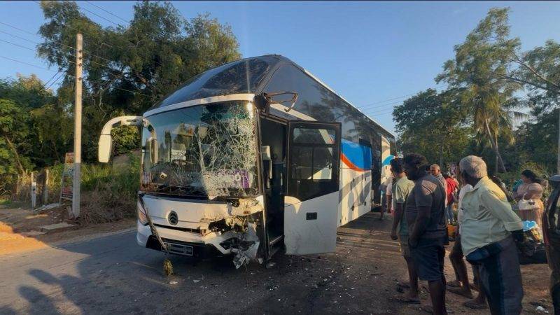 සුඛෝපභෝගි බස් රථයක්, මෝටර් රථයක් සහ යතුරුපැදියක් එකෙනෙක ගැටීමෙන් දරුණු රිය අනතුරක් සිදු ව ඇත.