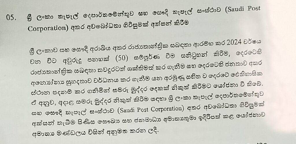 පුවත් තැපැල් දෙපාර්මේන්තුව සහ සෞදි තෑපෑල අතර අවබෝධතා ගිවිසුමක්! Date: December 16, 2025 රෂිකා හෙන්නායක දෙසැම්බර් 16, කොළඹ LNW : තැපැල් දෙපාර්මේන්තුව සහ සෞදි තෑපෑල අතර අවබෝධතා ගිවිසුමකට අත්සන් තැබීමට කැබිනට් අනුමැතිය හිමිව ඇත . TagsLanka News WebSri Lankaකැබිනට් තීරණ Previous article“Love Is Here” එන්න අපි වාඩි වෙලා කතා කරමු!Next articleපහළ මල්වතු ඔය බහුකාර්යය සංවර්ධන ව්යාපෘතිය ගැන තීරණයක්! Share post: FacebookTwitterPinterestWhatsApp Popular සැලකිලිමත් වන්න – තද වැසි පිළිබඳ අවවාදාත්මක නිවේදනයක් ! ආපදා වන්දි ලබා දීමේ ප්රගතිය මෙන්න. දිස්ත්රික් ලේකම්වරු සහ ජනාධිපති අතර විශේෂ සාකච්ජාවක්! දකුණු බ්රසීලයේ ගුවයිබා නගරයේ දැඩි සුළං හේතුවෙන් Liberty replica ප්රතිමාවේ අනුරුවක් කඩා වැටේ! කැබිනට් තීරණ දැනුම්දීම උණුසුම් කළ රංවලගේ තීරණය! තනතුරු බෙදාගත්තට වැඩක් නැහැ. කිසිවක් වලංගු නැහැ – දයාසිරි ලිපියක් නිකුත් කරමින් කියයි More like thisRelated සැලකිලිමත් වන්න – තද වැසි පිළිබඳ අවවාදාත්මක නිවේදනයක් ! RN - December 16, 2025 සටහන - රුවන් නෙළුගොල්ල නැගෙනහිර තරංගාකාර සුළං ප්රවාහයේ බලපෑම හේතුවෙන්... ආපදා වන්දි ලබා දීමේ ප්රගතිය මෙන්න. දිස්ත්රික් ලේකම්වරු සහ ජනාධිපති අතර විශේෂ සාකච්ජාවක්! ASK - December 16, 2025 ආශිකා බ්රාහ්මණ කොළඹ LNW:අයහපත් කාලගුණ තත්ත්වය මත ඇතිවූ ආපදා තත්ත්වයෙන්... දකුණු බ්රසීලයේ ගුවයිබා නගරයේ දැඩි සුළං හේතුවෙන් Liberty replica ප්රතිමාවේ අනුරුවක් කඩා වැටේ! Radhika - December 16, 2025 සටහන – පුලී දෙසැම්බර් 16, කොළඹ (LNW): දකුණු බ්රසීලයේ ගුවයිබා... කැබිනට් තීරණ දැනුම්දීම උණුසුම් කළ රංවලගේ තීරණය! Rashika Sandamali - December 16, 2025 රෂිකා හෙන්නායක දෙසැම්බර් 16 , කොළඹ LNW : පා....