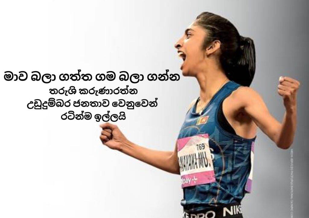 මෑත කාලයේ ශ්‍රී ලංකාවේ ඉහළින්ම අවධානය දිනා ගත් ක්‍රීඩිකාව ඇයය.ආසියාව දෙවනත් කරමින් ශ්‍රී ලංකාවට මිටර් 800 රන් පදක්කම ගෙනා තරුෂි කරුණාරත්න වෙනුවෙන් ඇතැම් ක්‍රීඩා බලධාරීන් පැරිස් ඔලිම්පික් ගමණට බැරියර දමන බව දැනෙද්දි,ක්‍රීඩා කේෂ්ත්‍රය නොව මේ රටේ බොහෝ පුරවැසියන් තරුෂිව සිය සහෝදරිය කර ගත්තේය.දියණිය කර ගත්තේය.ඒ සිහින් සිරුරේ ඇති අයෝමය ශක්තියට ආශිර්වාද කරමින් යෝධ සිතුවිලි පහළ කරමින් සටන් වැදිණ.ඇය ඒ ශක්තියද මුසු කර වේගයෙන් දිව්වාය.පැරිස් ඔලිම්පික් උළෙලටද ගියාය.