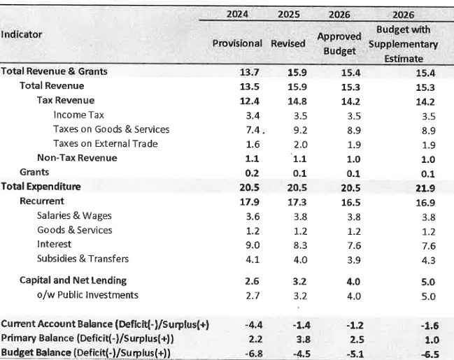 අතුරු අයවැය යෝජනා හේතුවෙන් ඉදිරි වසරේ රාජ්‍ය වියදම දදේනියෙන් 20.5% සිට 21.9% දක්වා 1.4%කින් ඉහළ යනවා. ඒ අතර, සුළි කුණාටුවෙන් පසුවද අපේක්ෂිත රාජ්‍ය ආදායම් එලෙසම ලැබෙනු ඇතැයි උපකල්පනය කර තිබෙනවා. මේ අනුව, ඉදිරි වසරේ රාජ්‍ය අයවැය හිඟය දදේනියෙන් 5.1% සිට 6.5% දක්වා 1.4%කින් ඉහළ යනවා. ප්‍රාථමික අයවැය අතිරික්තය කලින් සැලසුම් කළ 2.5% සිට දදේනියෙන් 1.0% දක්වා පහත වැටෙනවා. රජයේ ප්‍රාථමික වියදම් ව්‍යවස්ථාපිත උපරිම සීමාව වන 13.0% ඉක්මවා 14.3% දක්වා ඉහළ යනවා.
