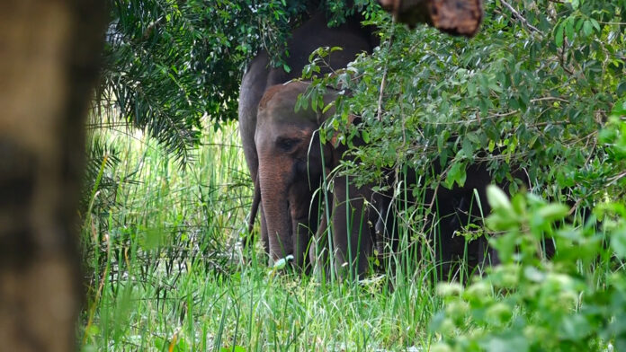 දළ සහිත ඇතෙකු ඇතුළු වන අලි 05 දෙනෙකුගේ රංචුවක් මෙලෙස වැවෙහි රැදී සිටියහ.