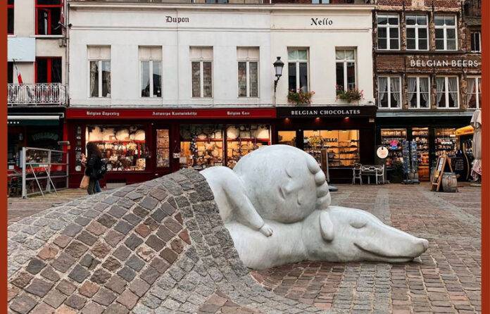 ඇන්ට්වෙර්ප් නගර මධ්‍යයේ හැන්ඩ්ශොන්මාර්ක් වීදිය කෙලවරේ ඇවිදගෙන යද්දි නෙලෝගෙ පිළිරුව ඇස් ඇදගන්නවා ඉබේටම.