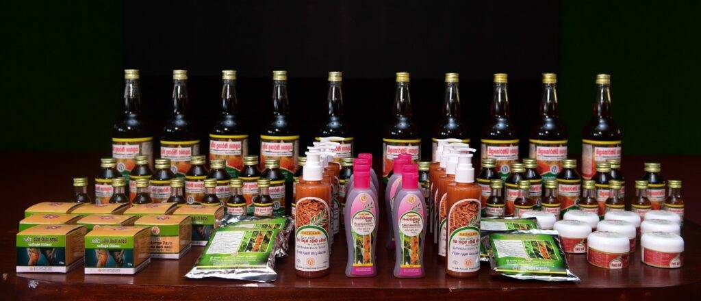 කුබ්ජ ප්රසාරණී තෛලය, බලා කෝරණ්ඩ තෛලය, පංචවල්කල චූර්ණය, සංස්ථා බෝන් මැරෝ පත්තුව යන ඖෂධීය නිෂ්පාදනයන් හා පිණ්ඩ බාම්, රත්හදුන් බොඩිවොෂ්, පංචවල්කල ෂැම්පූ යන ශාකසාර නිෂ්පාදන මෙලෙස එළිදක්වනු ලැබීය.