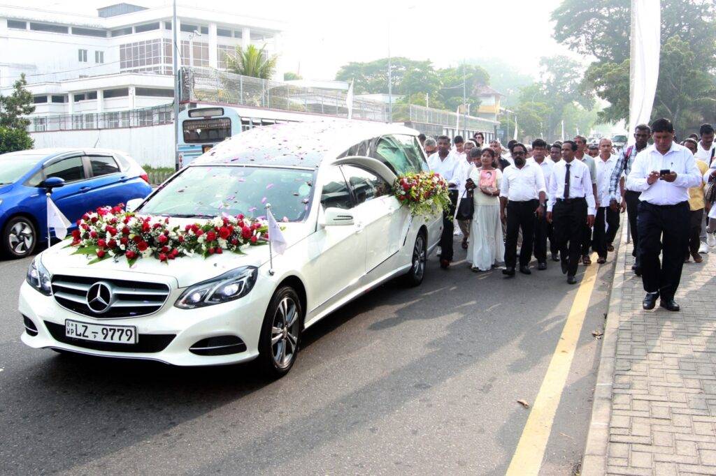 ඇයගේ දේහය මහජන ගෞරවය සඳහා අද(31) පෙ.ව 10.00 සිට ප.ව 2.00 දක්වා කොළඹ නිදහස් චතුරශ්රය පරිශ්රයේ තැන්පත් කර තිබූ අතර, ඉන් අනතුරුව මෙලෙස බොරැල්ල පොදු සුසාන භූමිය වෙත භූමදාන කටයුතු සිදුකරීම සඳහා රැගෙන එනු ලැබීය.