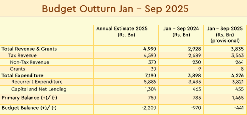 මේ වන විට මෙම (2025) වසරේ සැප්තැම්බර් මාසය දක්වා මාස නවයක කාලය හා අදාළ රාජ්යමූල්ය ගිණුම් පිළිබඳ සංඛ්යාලේඛණ ප්රකාශයට පත් කර තිබෙනවා. මෙම සංඛ්යාලේඛණ අනුව, වසර අවසන් වන විට සමස්තයක් ලෙස ශ්රී ලංකාවේ රාජ්යමූල්ය ගිණුම් වල දශක ගණනාවකින් දැකිය නොහැකි වූ යහපත් තත්ත්වයක් දැක ගත හැකි වීමේ විභවයක් පෙන්නුම් කරනවා.